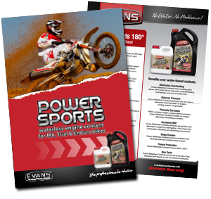 PowerSports is the coolant of choice for many professional racing teams and MX bike specialists. For racing teams such as Honda, no other coolant offers the performance of Evans waterless coolants.